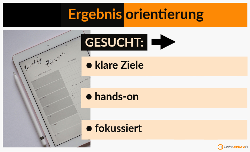 In Stellenanzeigen wird Ergebnisorientierung oft direkt, aber ebenso oft auch indirekt eingefordert. So wird diese wichtige Managementkompetenz beispielsweise so umschrieben.