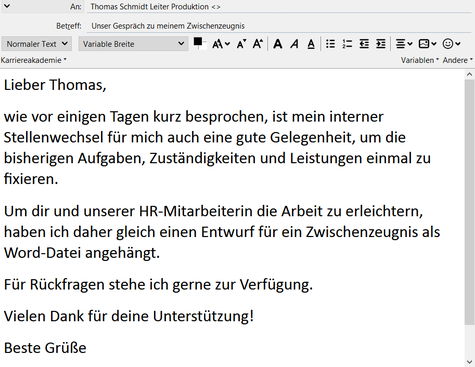 Worauf kommt es an, wenn Sie Ihrer E-Mail einen guten Entwurf für ein Zwischenzeugnis anhängen wollen?